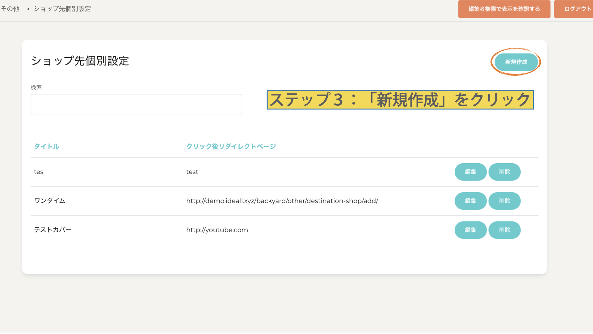 「新規作成」をクリック。編集する場合は「編集」をクリック