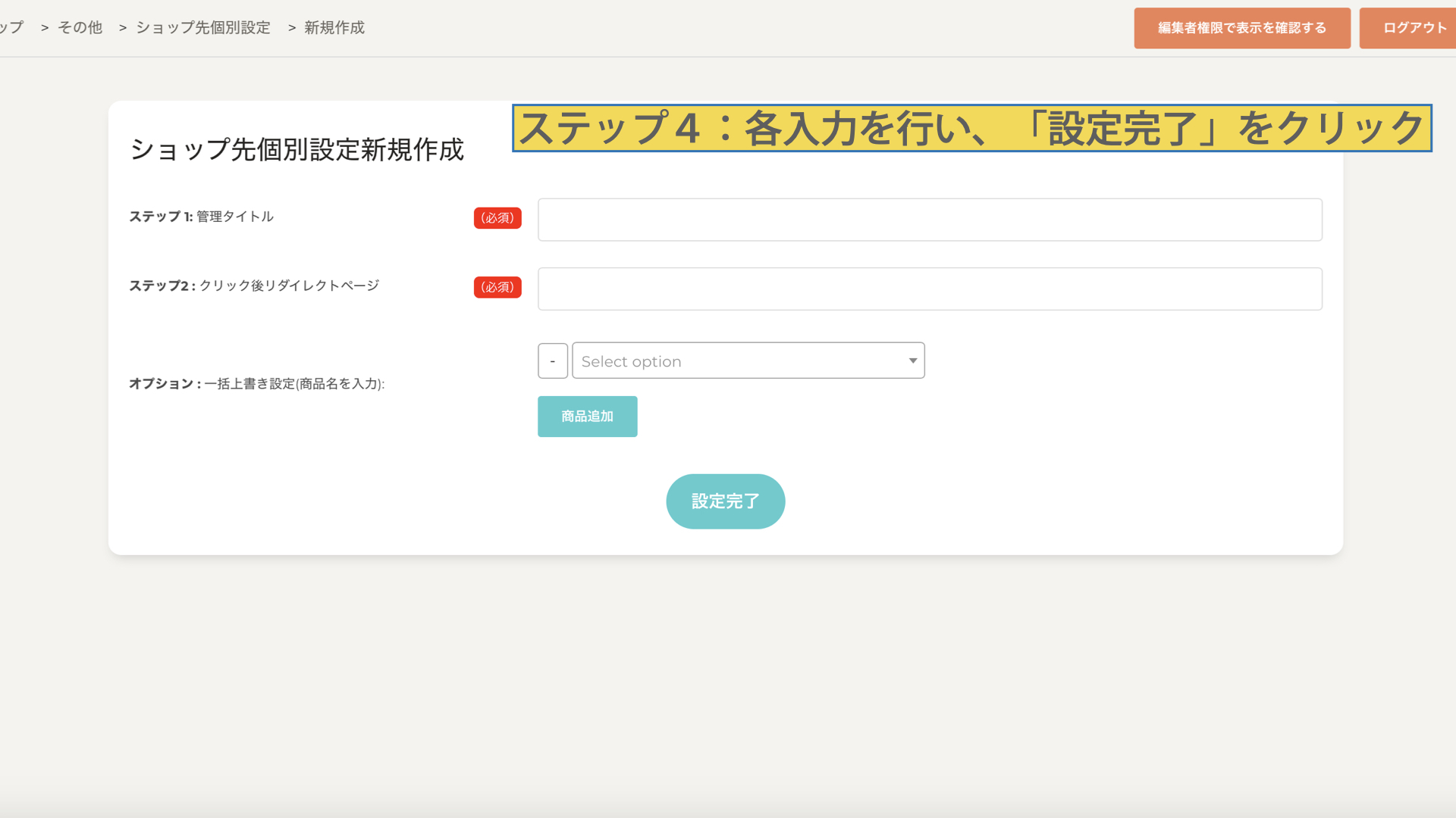 ・オプション:一括上書き設定(商品名を入力)
