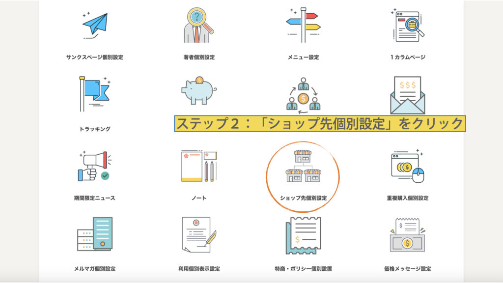 「ショップ先個別設定」をクリック