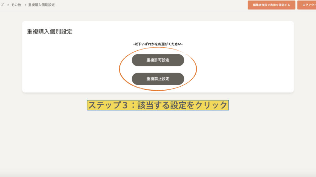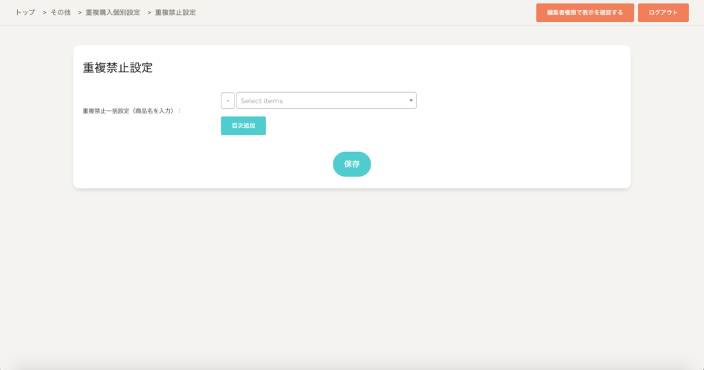 ・重複(許可or禁止)一括上書き設定(商品名を入力)