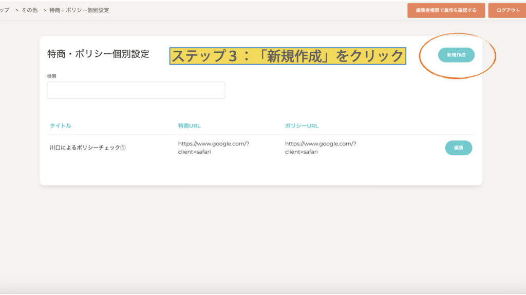・ステップ2:特商URL
