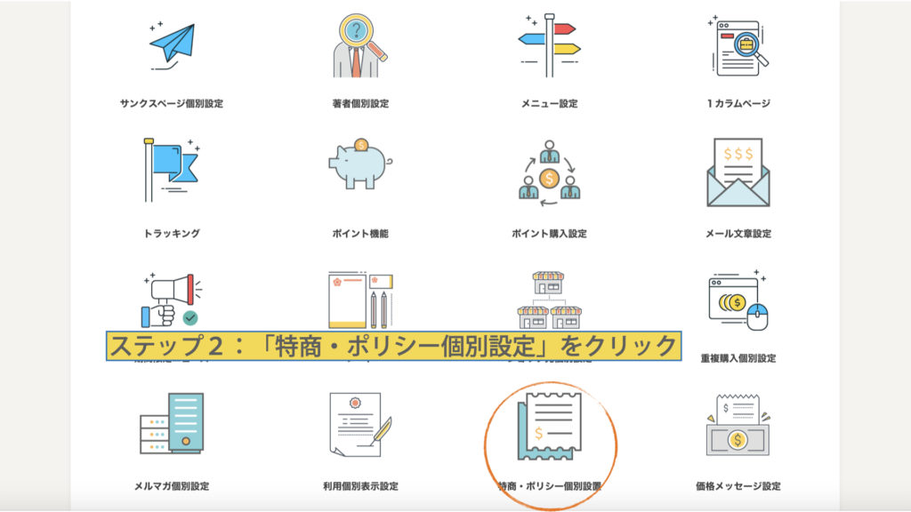 「特商・ポリシー個別設定」をクリック