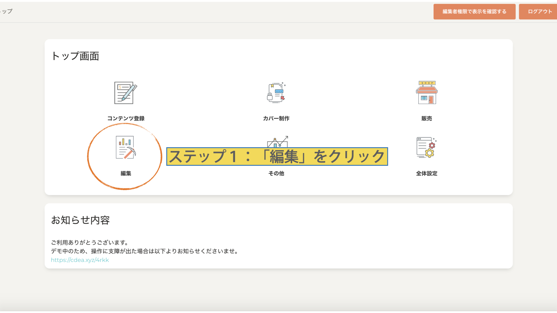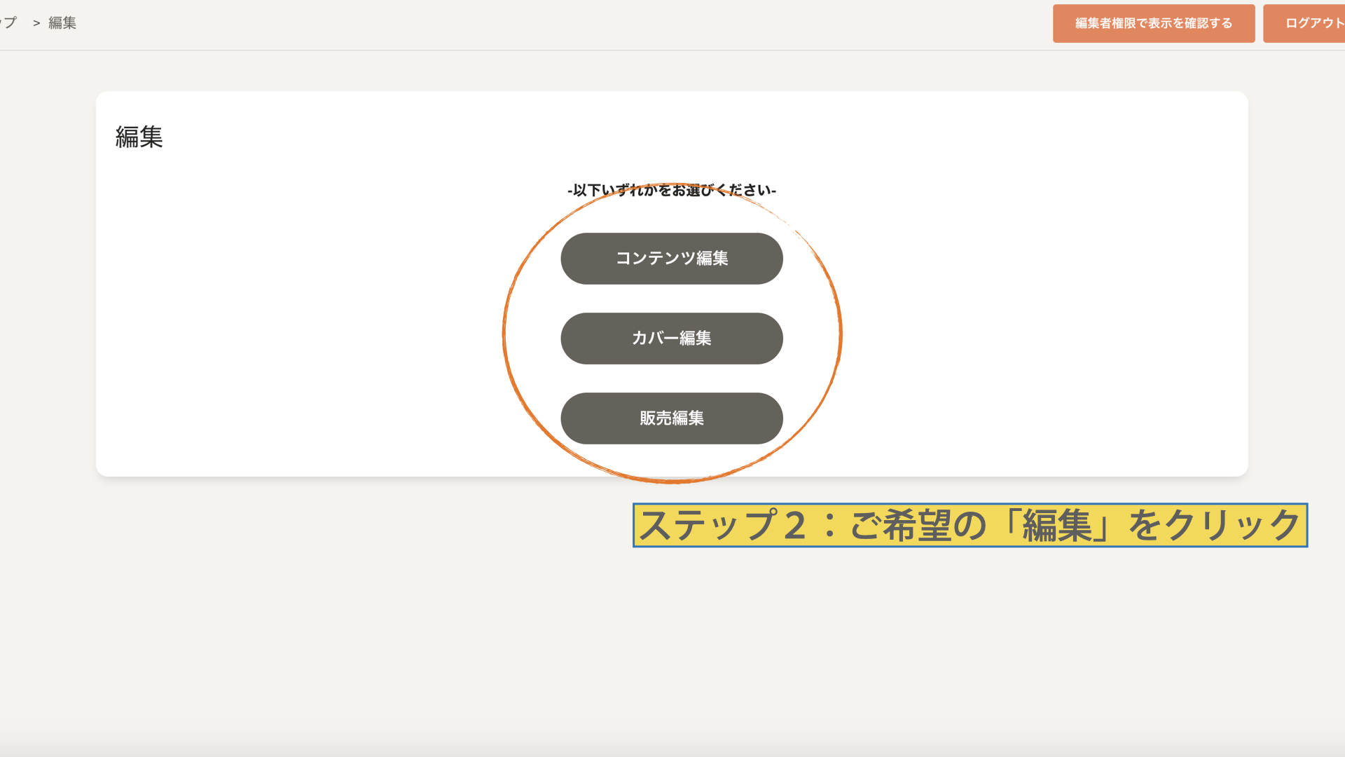 設定した「コンテンツ」「カバー」「販売」を編集したい場合は以下のステップで編集することができます。