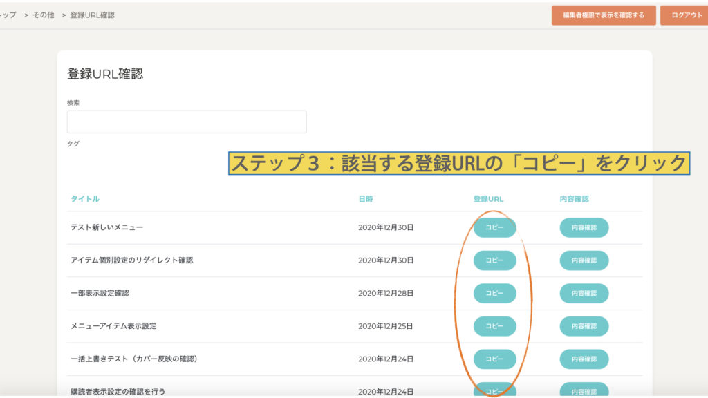 無料オファーや登録を促す際に必要な登録URLを発行することができます。