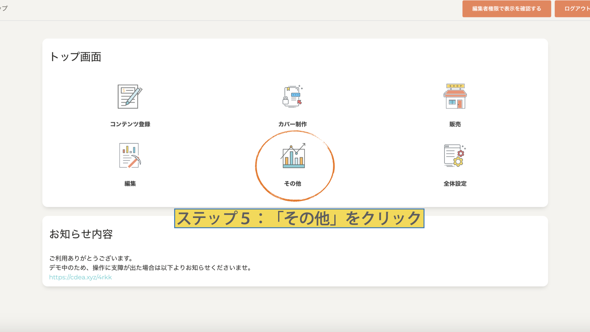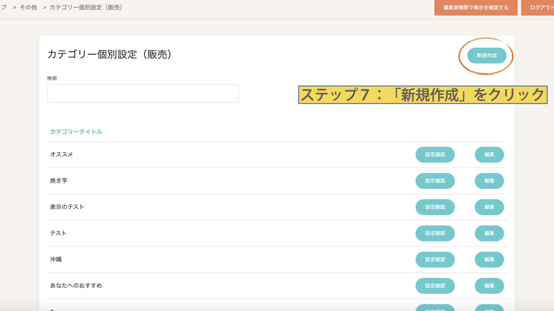 「編集者権限で表示を確認する」から「ショップ」をご覧いただき確認してください!