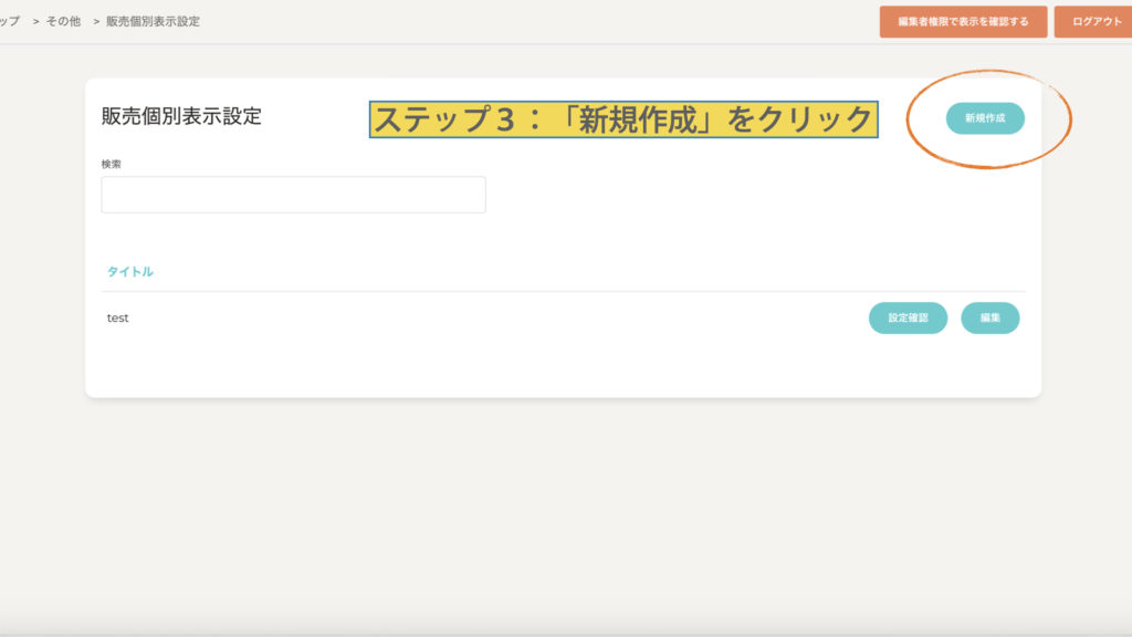 「新規作成」ボタンをクリックする。編集が必要な場合は「編集」ボタンをクリックしてください。