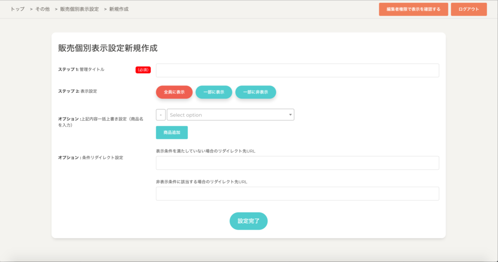 ショップで販売するアイテムの表示条件を細かく指定することができます。