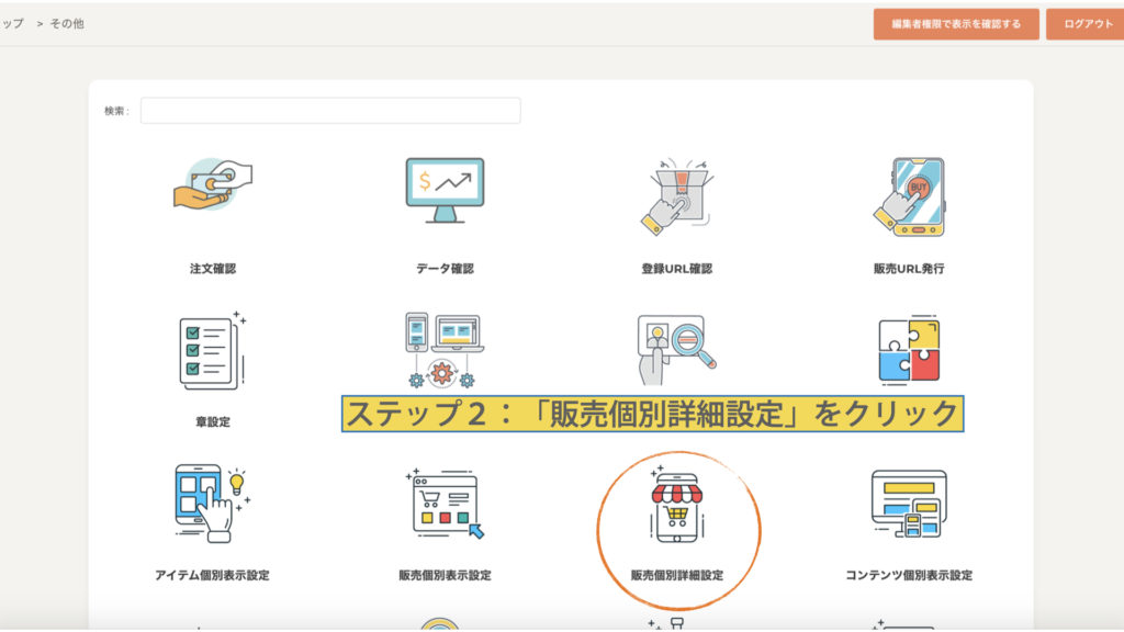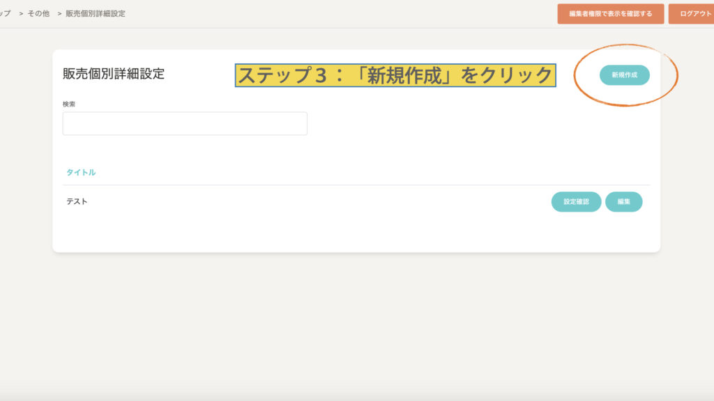 「販売個別詳細設定」をクリック