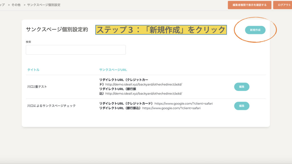 「新規作成」ボタンをクリックする。編集が必要な場合は「編集」ボタンをクリックしてください。