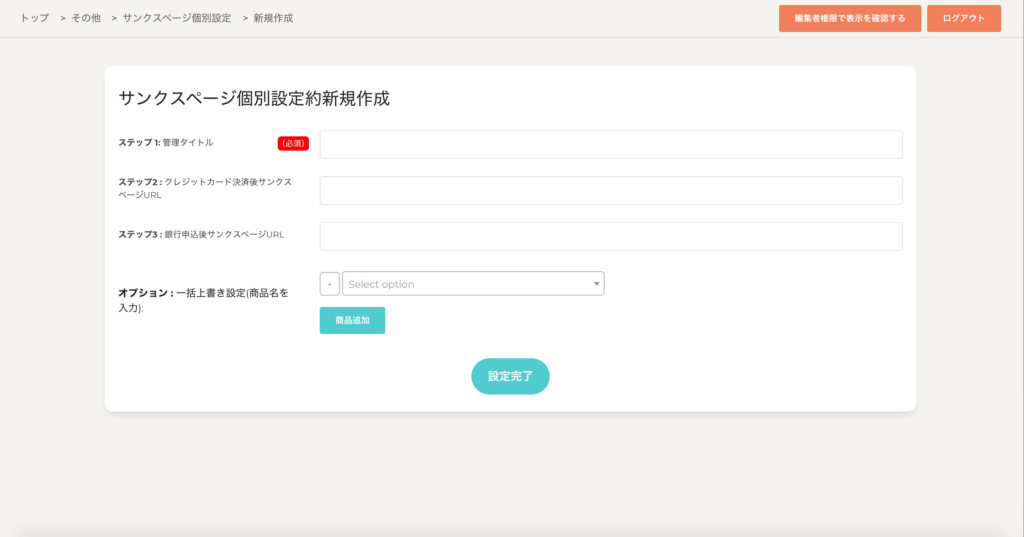 →銀行振り込み申し込み後に移動するサンクスページURLを入力ください。
