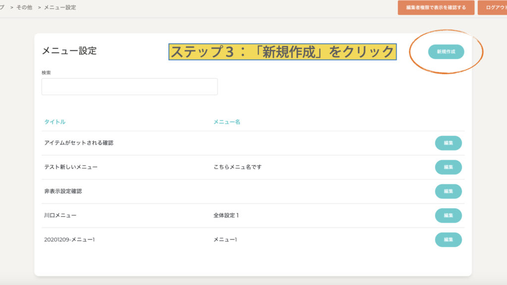 「新規作成」ボタンをクリックする。編集が必要な場合は「編集」ボタンをクリックしてください。