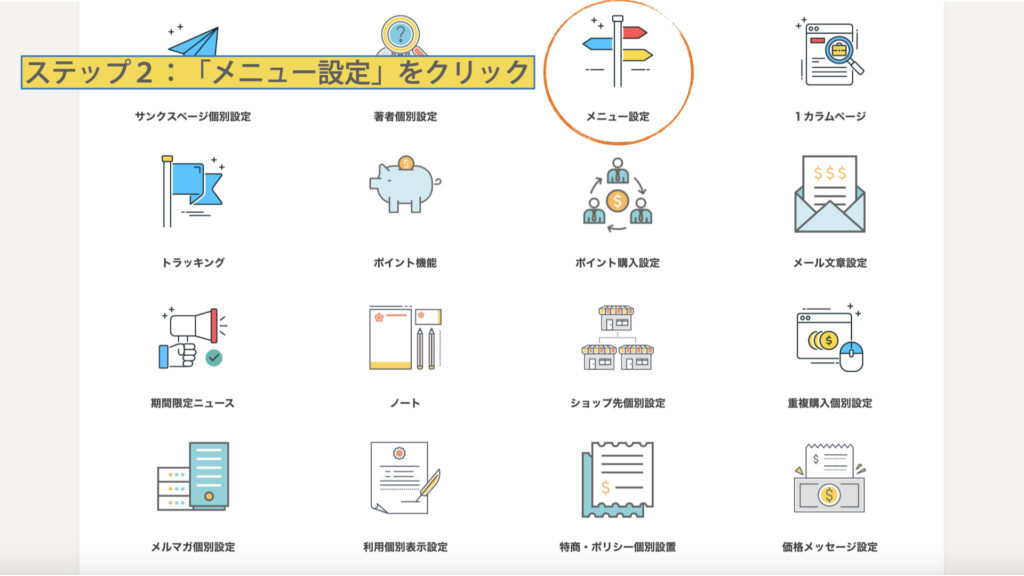 「メニュー設定」をクリック
